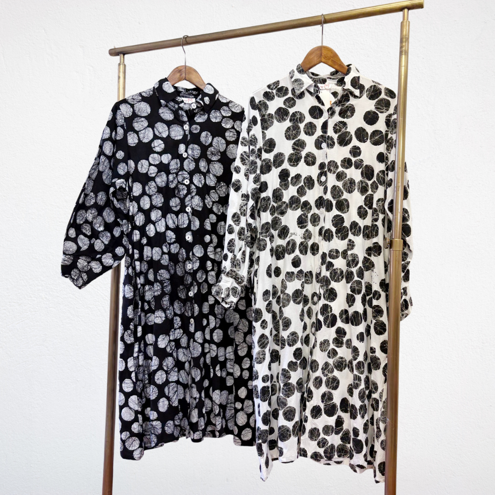 # 華やかな一枚で魅せる、myM インド綿混ろうけつ染めシャツワンピース ✨