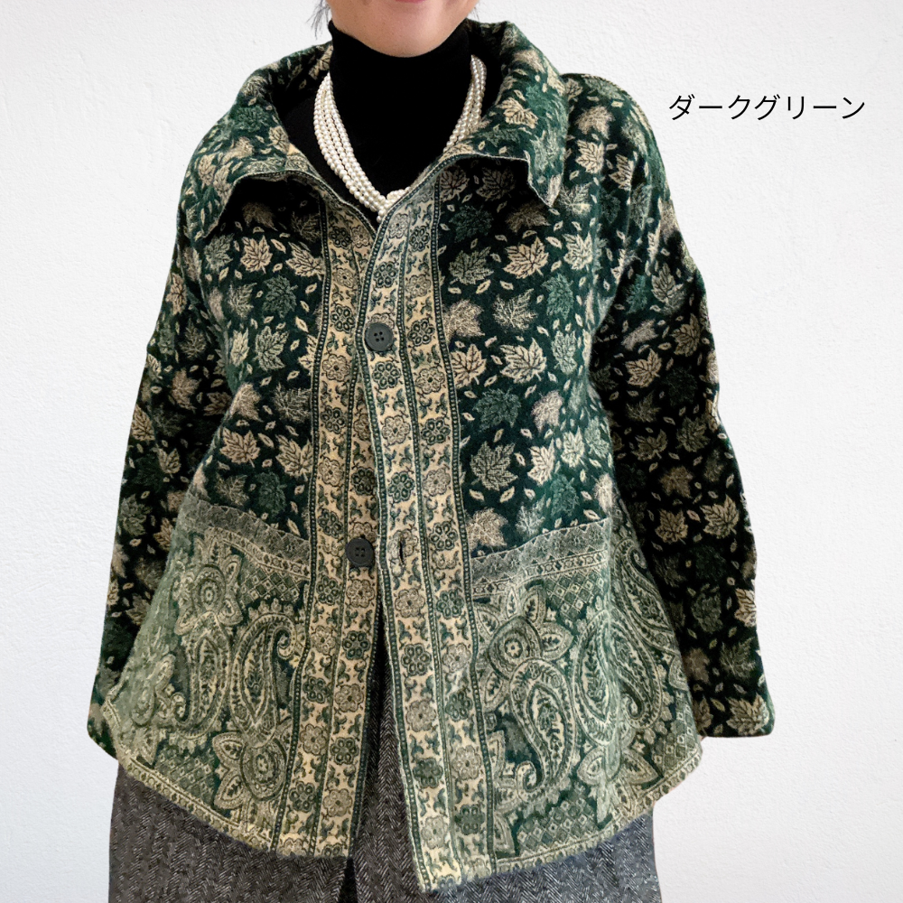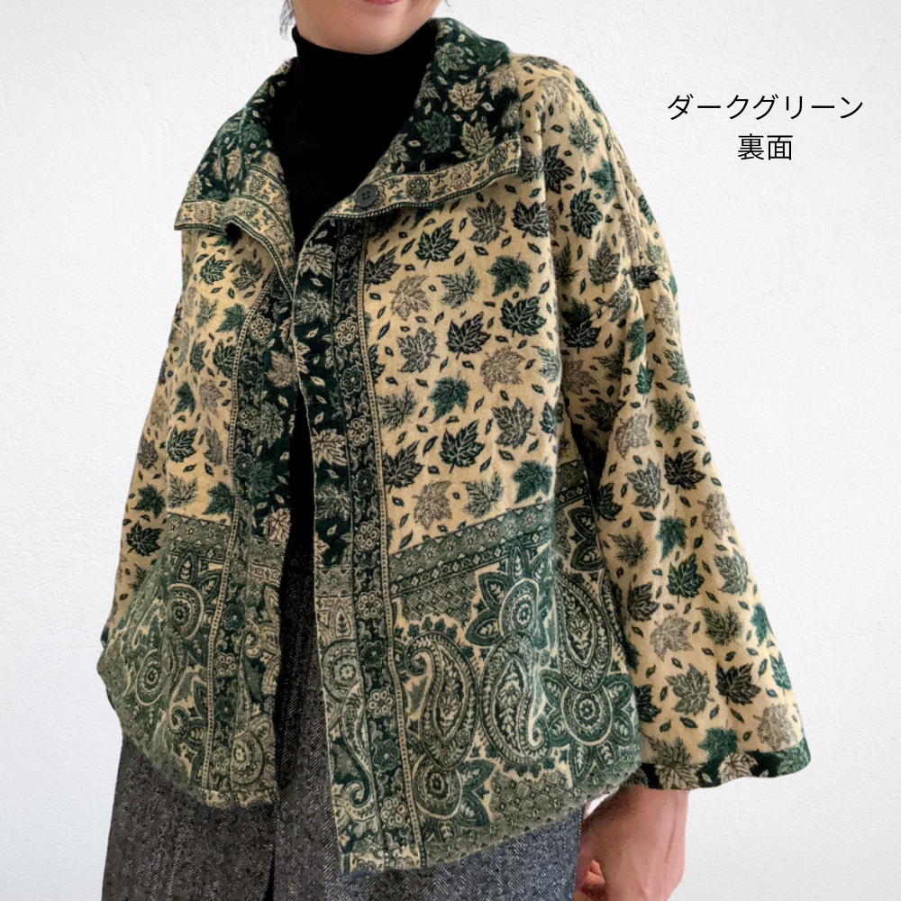 リバーシブルなので、2つの表情を楽しめる点も魅力のひとつ。気分や着こなしに合わせて、表情を変えることができます。裏返して着用頂く際は、ボタンを留めずに羽織るタイプに変身します。