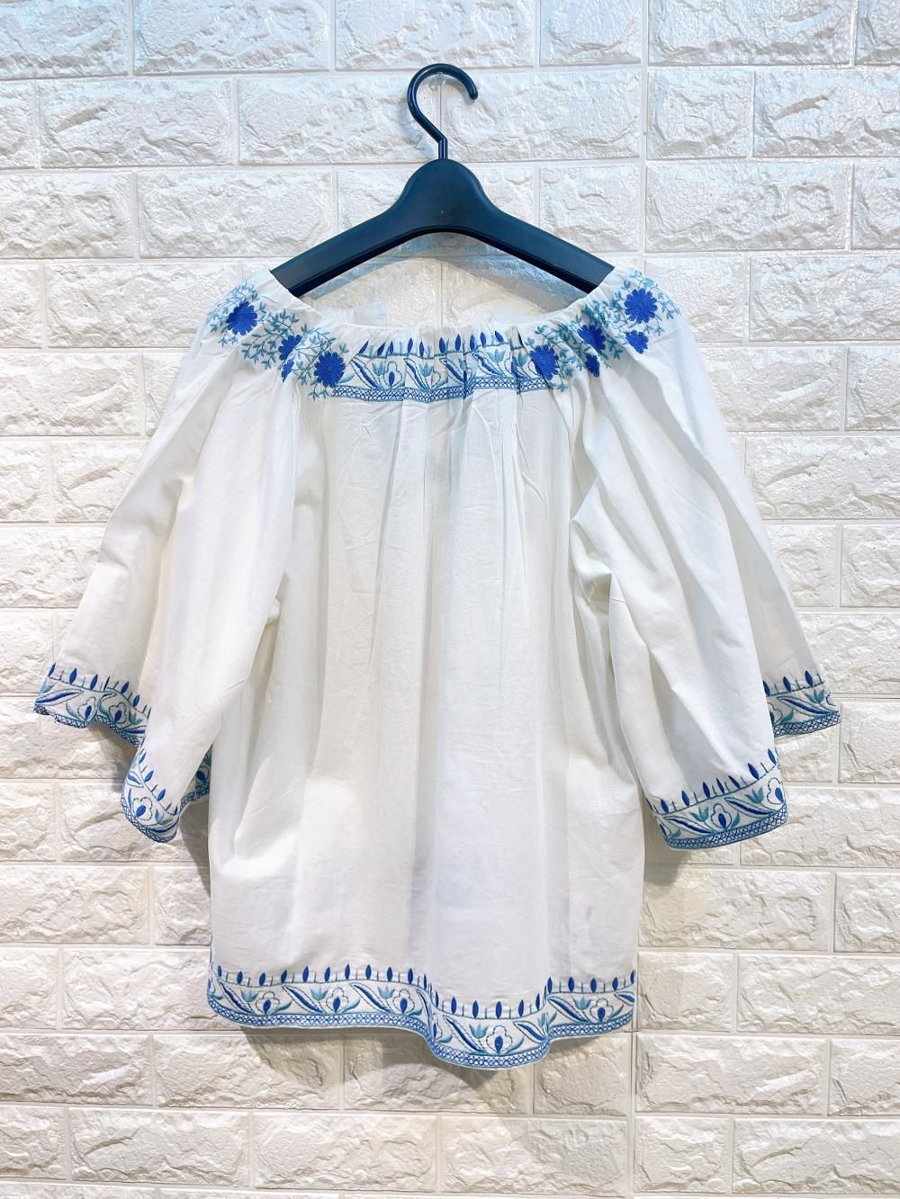 インド綿100%で織りなされたこのブラウスは、繊細な刺繍が施されており、華やかさとエレガンスを兼ね備えています🎀軽やかな着心地と上品なデザインが、幅広いスタイリングにマッチし、1枚でコーディネートを格上げしてくれます。