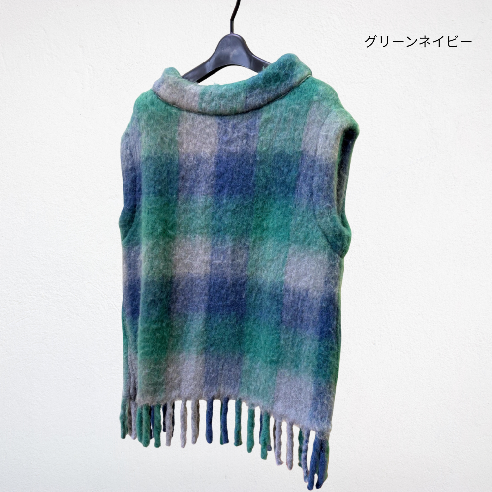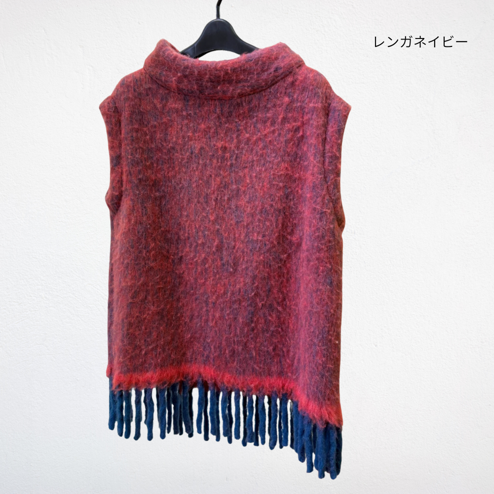 暖かさと軽さを兼ね備えたこのベストは、寒い冬にぴったりの必需品です。ゆったりとしたアームホールで着脱も楽々、重ね着にも最適なデザインが特徴です。さらに、裾のフリンジが大人カジュアルな雰囲気を演出し、ビタミンカラーで元気な気分にしてくれます。